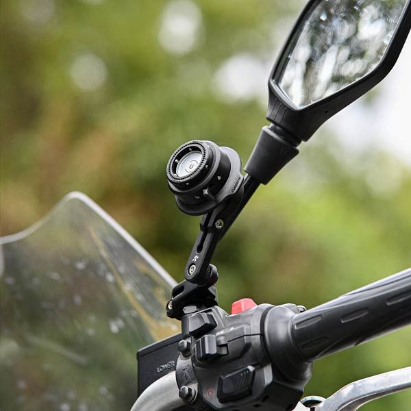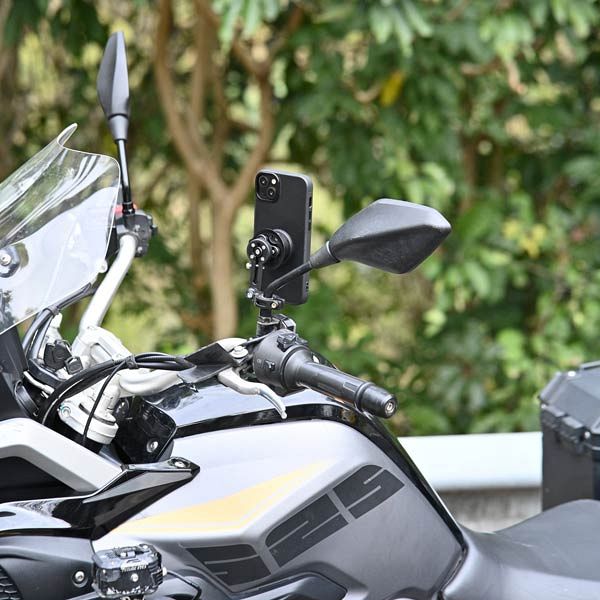 The QM04 attaches on to your motorcycle's mirror stem shaft. With an articulating arm, you can easily adjust the phone angle.