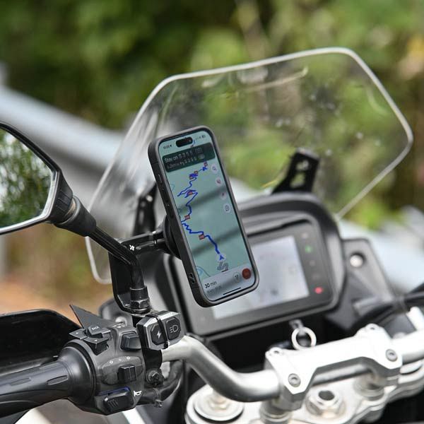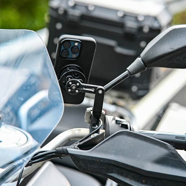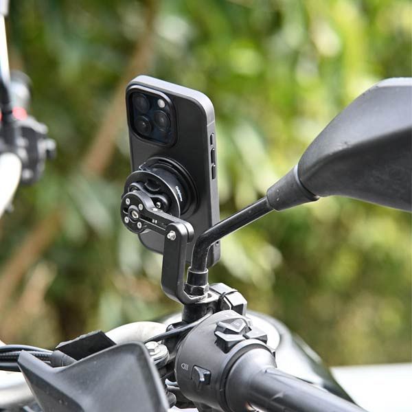 The QM05 attaches directly onto your motorcycle's mirror stem. With an articulating arm, you can easily adjust the phone angle.