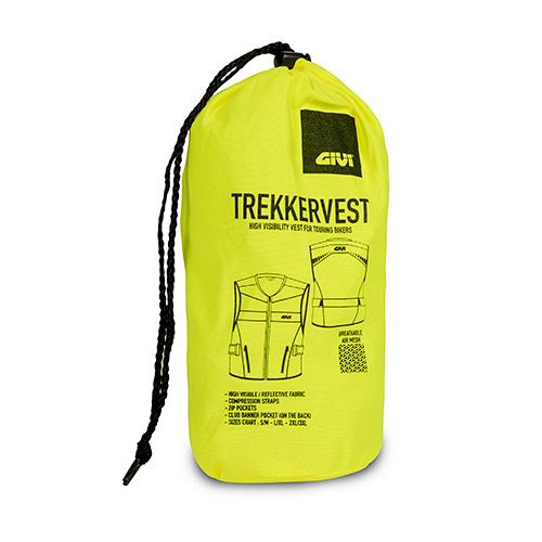 Givi's Trekker Vest02 is a high visibility outer sleeveless vest, keeping you clearly visible during your on-road or off-road adventures. It combines a fluorescent yellow surface with reflective strips both at the front and rear zones. Available in three sizes, these hi-vis vests easily fit over various types of jackets, and also come with a handy bag for tidy stowage in your luggage.