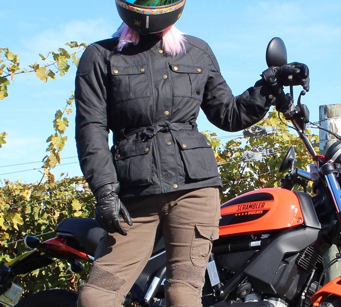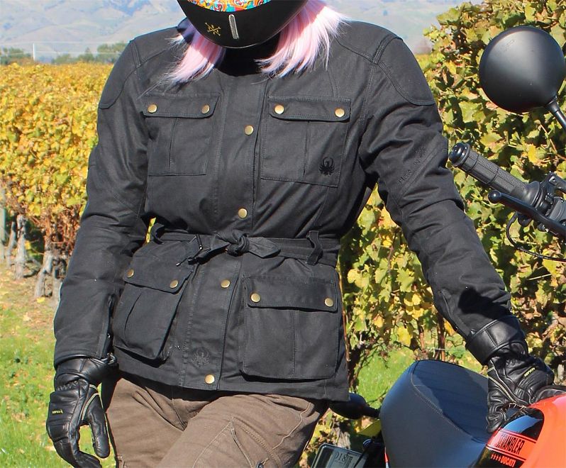 The Ashley is a very stylish ladies heritage-style jacket made from Halley Stevensons 8oz Scottish Thorn Proof waxed cotton. Adjustable in the hem and cuffs and belted at the waist, the Merlin Ashley Jacket is tailored for a women-specific fit. Technical features include a Reissa waterproof/breathable membrane, YKK zips, removable CE armour in the shoulders and elbows, a back armour pocket, and a removable 100g Thermal Liner.