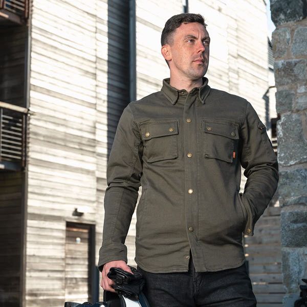 The Brody allows you to ride in style without compromising on safety. Designed to look like a classic utility shirt, Brody is constructed using a single layer stretch cotton twill, achieving CE Level ‘AA’ overall, backed up by D3O’s flexible Ghost armour pre-fitted to the shoulders and elbows. Brody is finished with durable YKK zippers and Merlin-branded brass snap studs to complete the look.