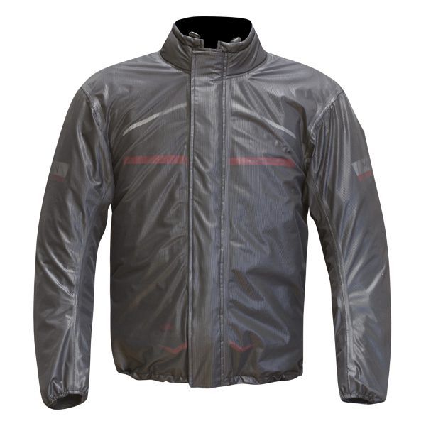 Handy semi-transparent rain jacket by Merlin, featuring a logo on the upper back. Comes with a bag for easy storage.