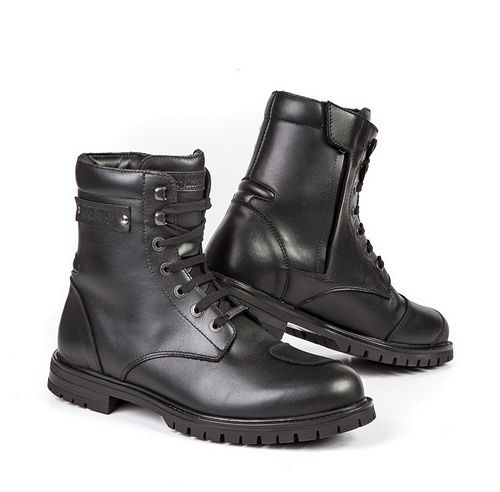 This stylish and versatile technical boot combines urban, touring and café racer segments all in one product. Packed with technical features like water-repellent full-grain leather with matching leather gear shift protector, internal PU ankle inserts on both sides, waterproof and breathable lining, padded collar with lace and zipper closures.
