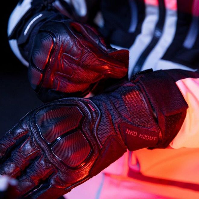 Spidi's NKD H2Out gloves have been designed to combine maximum waterproofness, extreme lightness and high quality components, great for long rides with unpredictable summer rain and ideal in medium-high temperatures. The H2Out waterproof and breathable membrane guarantees dry rides in every condition. Goat leather, with limited thickness, high grip and great abrasion resistance, increases comfort and safety levels. Thanks to the Warrior knuckle protectors the NKD H2Out are CE-certified to EN 13594:2015 Lev.1 standard.