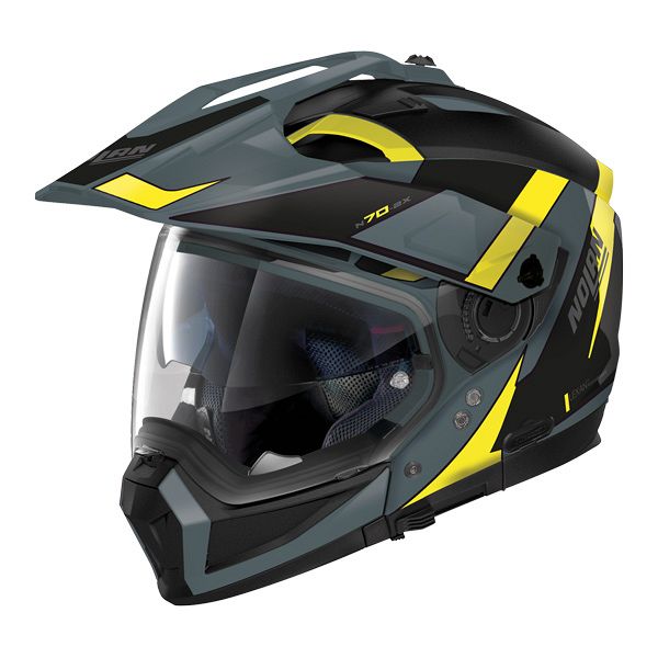 Nolan’s top-of-the range polycarbonate crossover is quite possibly the most versatile helmet on the market. Aimed squarely at the on/off road segment, the N70-2X can be worn with goggles, without the need to remove the visor. Featuring a removable chin bar, with double P/J homologation, a removable peak and removable visor for eight possible configurations, the N70-2 X lends itself to a multitude of riding styles and performs beautifully in every situation. Additional features include an internal sun visor, the AirBooster ventilation system and Clima Comfort interior lining. Compatible with N-Com communication systems.