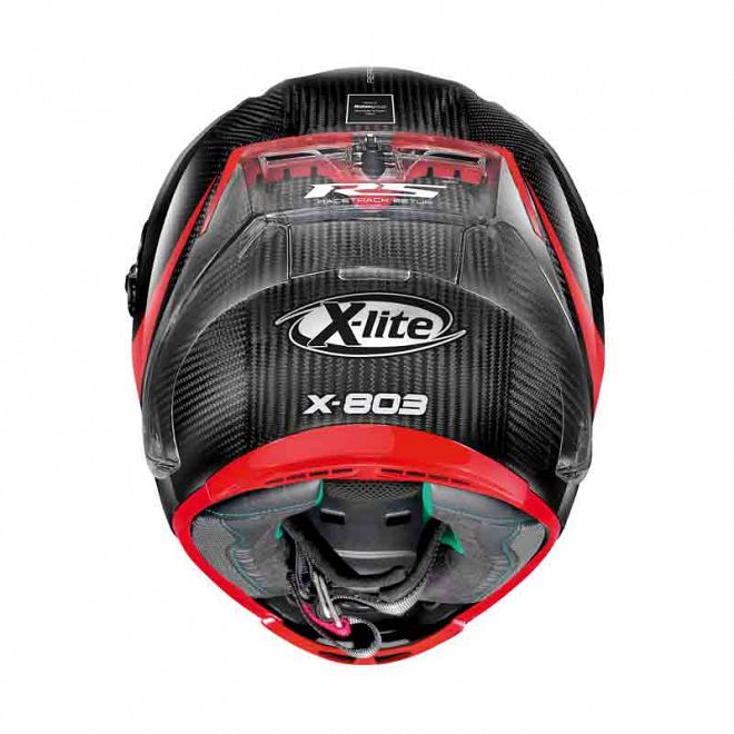 The X803RS Ultra Carbon is packed with features and enhanced by an exclusive racetrack setup. It comes with an additional clear visor, a Racetrack Aerodynamic Spoiler (removable), and an exclusive adjustment system for the position of the liner. Also includes all the same high quality features of the original X803 Ultra Carbon, such as the Nolan Emergency Release System to allow emergency teams to remove the helmet with minimal risk of further injury, Racing Air Flow ventilation system to keep you cool, and an Adjustable Stability Device so you can optimize air-flow for your own body size and riding style, as well as the usual premium features like a double action, Pinlock® visor, Single Block cheek pads, washable carbon inner liner and a revised chin shape to improve comfort.