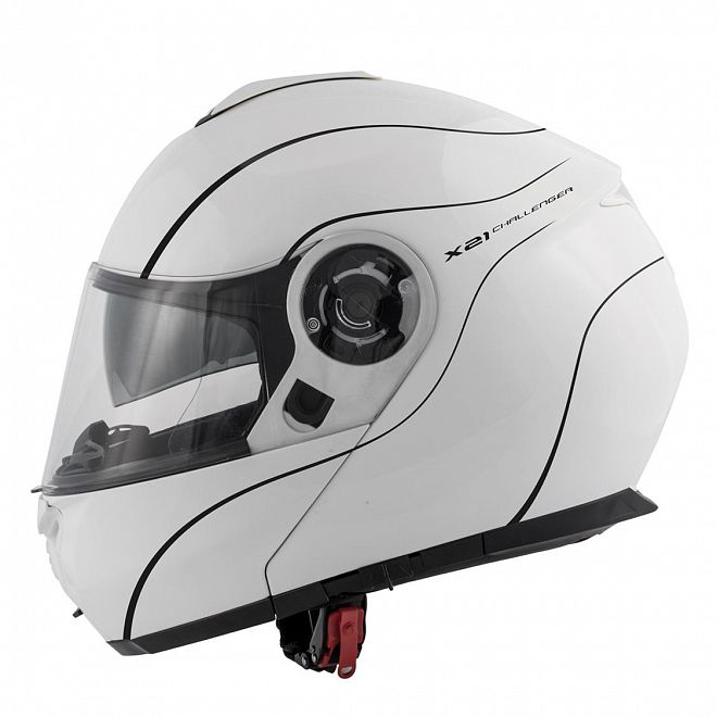 The X21 is Givi’s top-of-the-line flip front helmet. This modular helmet is made of thermoplastic material, equipped with an openable chin guard and sun visor. Complete with removable and washable internal lining, this is a great helmet for budget-conscious touring. Available in cool white, it looks great too.