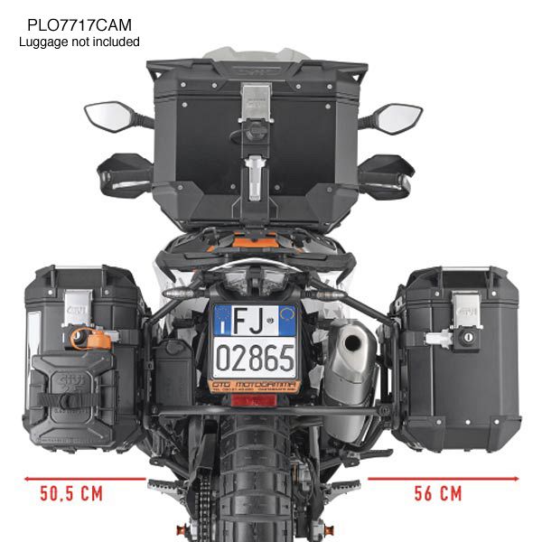 To fit panniers, you will need a GI PL rack. You can use the PLO7717CAM for Givi's Trekker Outback panniers, or PLO7717MK for Givi hard or soft Monokey panniers. All pannier racks can be converted to rapid release with the addition of the 1ORKIT. An S250 toolbox can be fitted to the pannier rack with the TL6415KIT for the rack you have (both items sold separately).