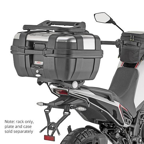 To fit a touring top box or soft luggage on the rear rack, you will need an SR top box kit plus a Monokey plate (for mounting a Monokey top box) or the EX2M plate (for mounting soft luggage). Click here to see top box options or click here to see more info on plates.