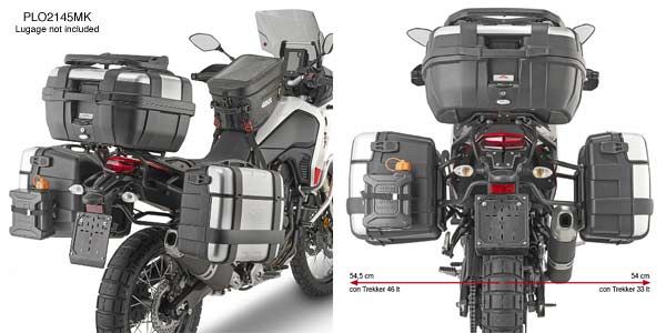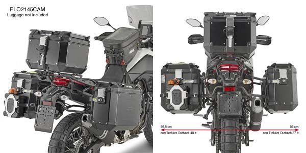 To fit panniers, you will need a PLO one-fit rack, with either a Monokey kit (OFMK) or Cam kit (OFCAM). The kit you require will be dependent on what panniers you choose. For hard luggage, you can then choose from any Monokey panniers or the Outback Trekker. Alternatively for soft luggage, choose from the Adventure range, Touring range or Urban range.