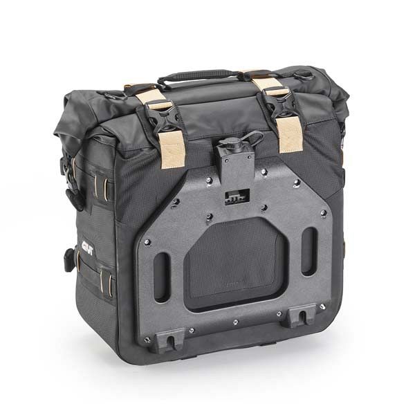 Givi's GRT720B is the essential enduro pannier bag set. Each bag holds 25 litres and are rugged enough to withstand extreme conditions. Made from tough, weather-resistant materials, they feature a roll-top closure and removable waterproof liners to keep your gear bone dry. The handy MOLLE side loops allow the flexibility to add extra bags or accessories when more space is needed. Compatible with Givi Monokey pannier racks. Comes equipped with a security lock, which can be matched with your top case and toolbox, if required, using the SL102-SL105 kits (sold separately).