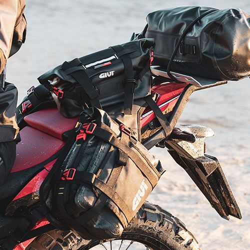 Givi’s universal saddle base is perfect for adventure riders wanting an adaptable system for carrying bags, letting you customise your luggage needs for short day trips through to longer, more demanding journeys. Particularly suited to enduro bikes, the super tough Canyon Base with a full load of Givi soft luggage allows a maximum capacity of 60 litres, with flexibility for various side bags and top loads, such as roll bags, cargo bags or dry bags (bags sold separately).