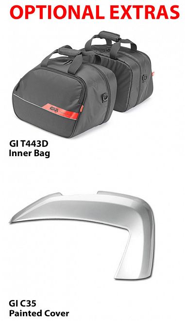The V35 side cases have a profile that closley follows the lines of the fairing on the motorcycle, considerably improving the aerodynamics.