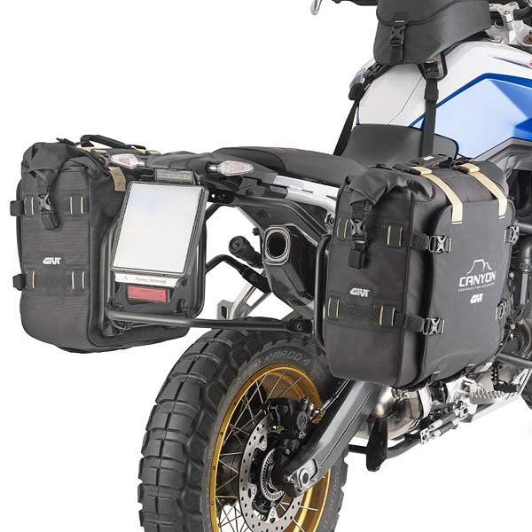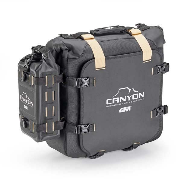Givi's GRT720B is the essential enduro pannier bag set. Each bag holds 25 litres and are rugged enough to withstand extreme conditions. Made from tough, weather-resistant materials, they feature a roll-top closure and removable waterproof liners to keep your gear bone dry. The handy MOLLE side loops allow the flexibility to add extra bags or accessories when more space is needed. Compatible with Givi Monokey pannier racks. Comes equipped with a security lock, which can be matched with your top case and toolbox, if required, using the SL102-SL105 kits (sold separately).