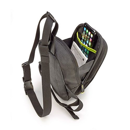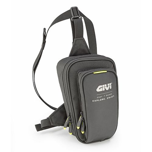 Leg bag with inner and front pockets.  Attaches to your waist and upper thigh.  Perfect for easy access to wallet and/or phone while on your bike.