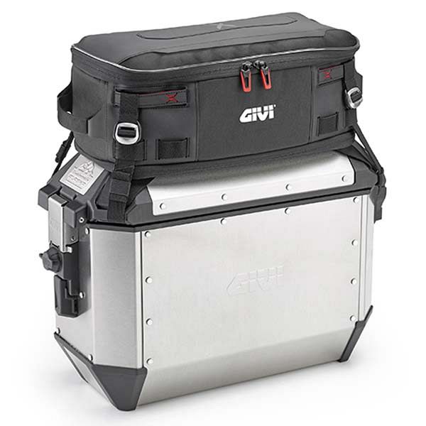 Givi's X-Line is a range of robust, expandable and water-resistant soft luggage, ideal for touring, adventure or urban use. The XL01 is a very practical water resistant cargo bag, expandable from 15 to 20 litres. Can be adapted to fit onto top loading panniers that have belt-strap loops, small racks on top cases or on a pillion seat. Featuring a red interior for better internal visibility, this removable internal bag will keep your belongings dry even in heavy rain.