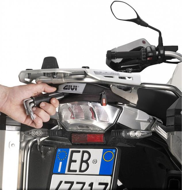 XStream tool bag designed to be mounted under the original rear rack of the BMW R1200GS Adventure 2014