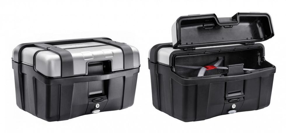 One of Givi's largest top boxes, the TRK52 can hold two modular helmets, with room leftover room for more. Available in silver or black and can be combined with matching panniers, the standard Trekker range of hard luggage is perhaps the most versatile in the Givi line-up.