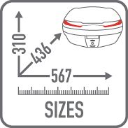 The V45 Arena top case from Givi is a practical and stylish top case with an impressive 45 litre volume, large enough to fit two full-face (not modular/flip front) helmets with a 10kg load capacity.