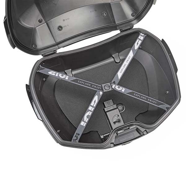 The Givi V49NB Air top case is designed to transform your ride in both performance and style. Equipped with the patented WINGFLOW system, tested in the wind tunnel by Givi’s R&D team, the V49 reduces vibration, cuts wind noise and improves stability by directing airflow smoothly past the case. With two black-painted aerodynamic wings on each side, it doesn’t just work better, it looks sharper too.