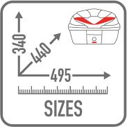 This 39 litre Monolock top box comes in black with carbon look panels. A great size to easily fit one full face or two scooter helmets plus more. Comes with mounting plate included. Maximum loading of 3kg.