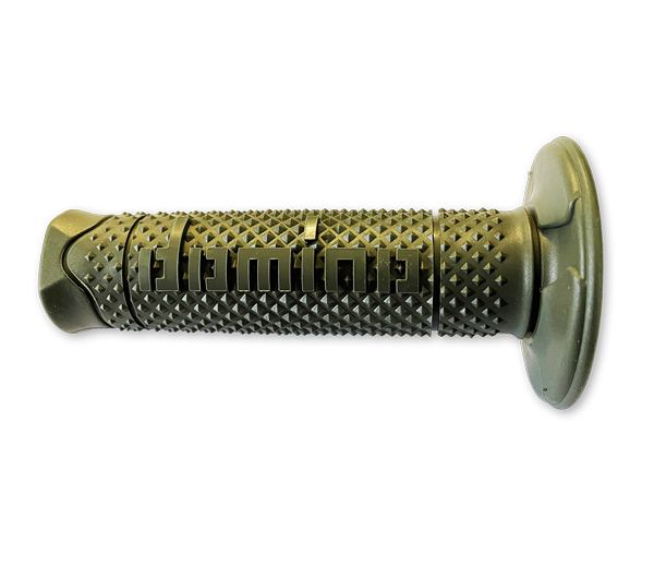 Single colour highly advanced thermoplastic rubber grip by Domino. Thanks to the special multi-pyramidal "coarse dimple" finish, the A260 has an extraordinarily soft and comfortable feel, providing maximum grip in off-road conditions. The central part has a barrel profile providing even better grip, essential when racing. Includes slots for lockwire.