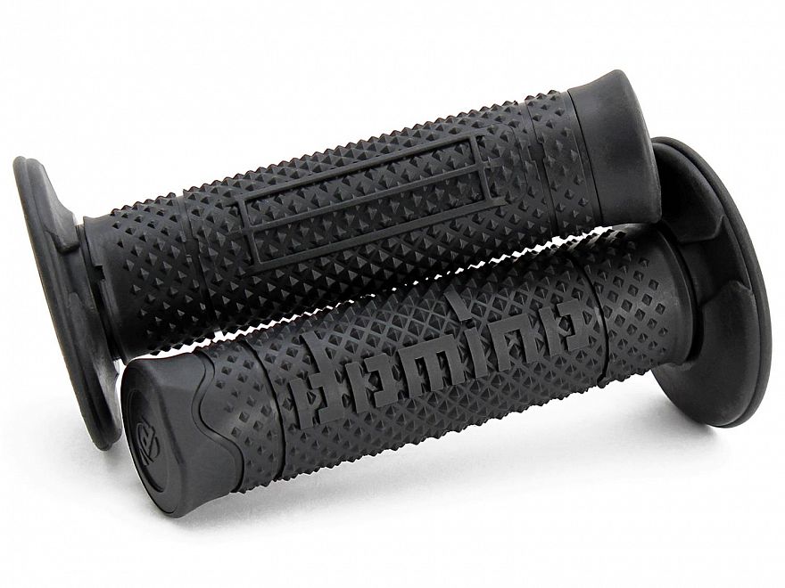 Single colour highly advanced thermoplastic dual compound rubber grips by Domino. Thanks to the special multi-pyramidal "coarse dimple" finish, the A260 has an extraordinarily soft and comfortable feel, providing maximum grip in off-road conditions. The central part has a barrel profile providing even better grip, essential when racing. Includes slots for lockwire.
