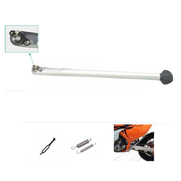 6061-T6 Aluminium side stand complete with springs, assembled brackets, and rubber tie.