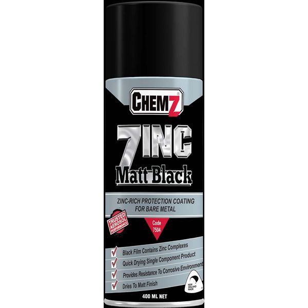 MATT BLACK ZINC AEROSOL 400 ml Image CZ 7504 MATT BLACK ZINC AEROSOL 400 ml $34.90 In stock Enquire now