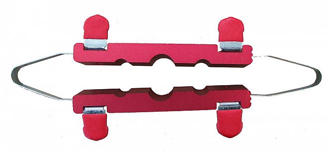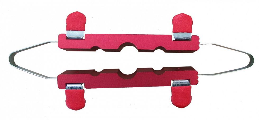 Soft jaws for shock shafts, axles, and round bits.  Diam. 5/16 (8mm) - 9/16 (15mm).  Sprung loaded so won't fall out of vice when released