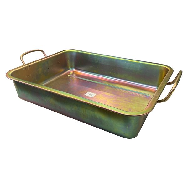 Tool tray, parts bin, drain tray, oil pan, roasting dish*. Call it what you like, this handy metal tray with handles fits the bill for so many jobs in the workshop. A decent size, this tray will hold approximately 9 litres of fluid and is large enough to catch all the drips.