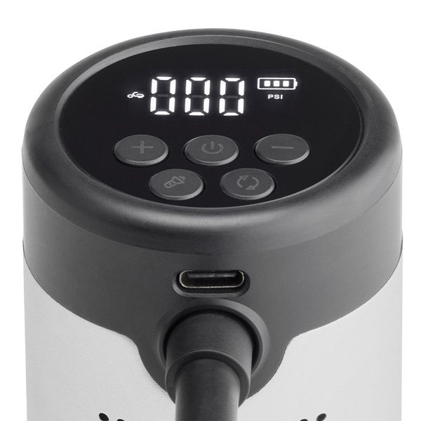 The 5,200 mAh battery guarantees autonomy and steady power (charging current of 6 A, Max. 5 V/2 A). The kit includes a USB-C cable, a USB – USB-C adaptor, a standard Schrader valve and adaptors for balls, inflatable accessories and tyres with a Presta valve.