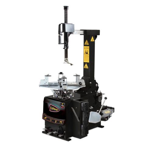 Automatic tyre changer, designed to mount and demount tyres for motorcycle, moped, ATV*, Go-kart and turf maintenance vehicles. With a traditional bead breaking system and self-centering turntable it can accommodate rims from 6" to 26" as supplied. Made in Italy.
