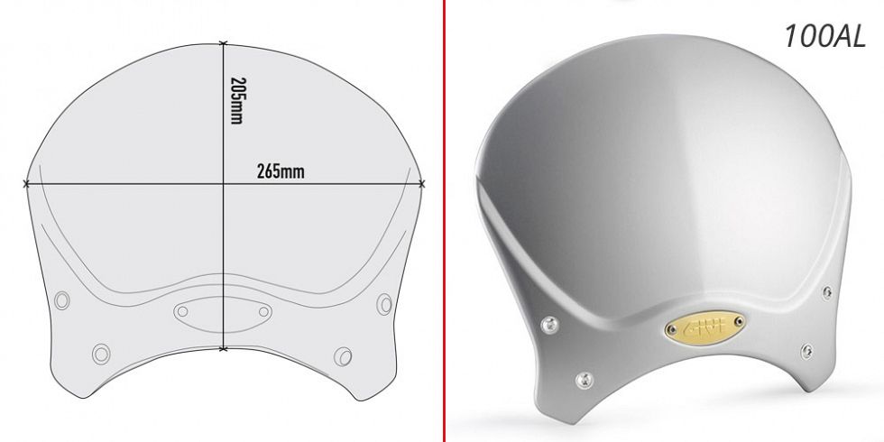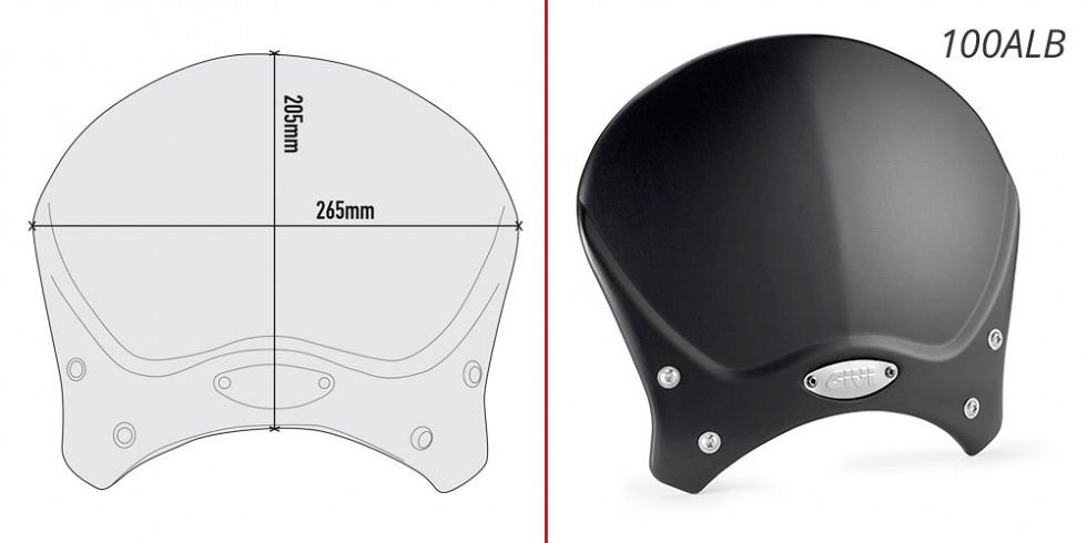 100ALB - Black anodized aluminium universal screen Race Cafe, for naked motorcycles 20.5 x 26.5 cm (H x W) to be combined with the specific AL9351A fitting kit